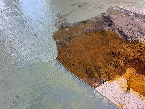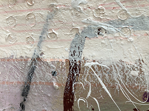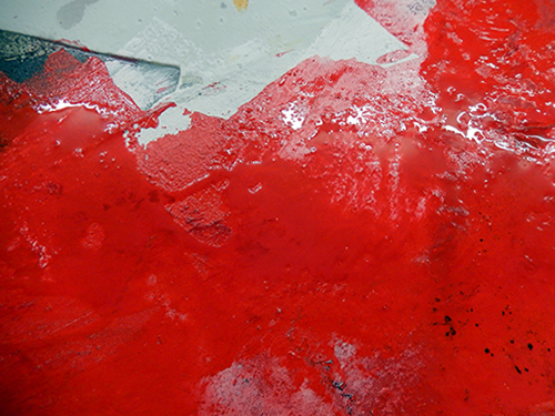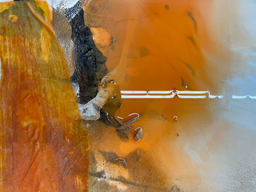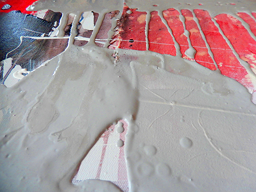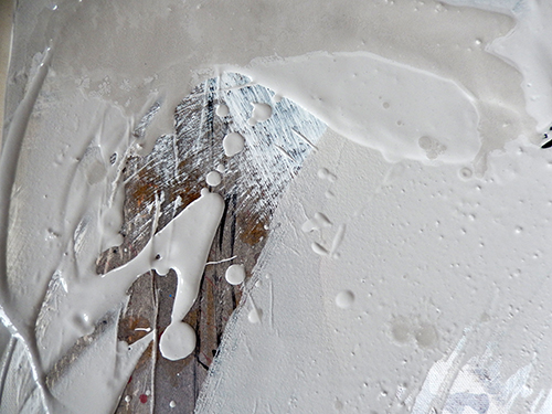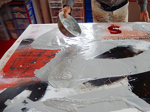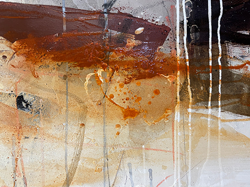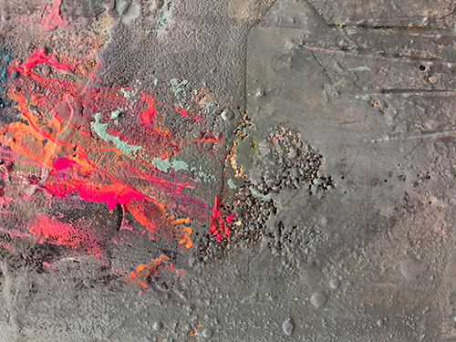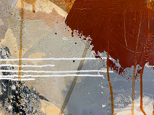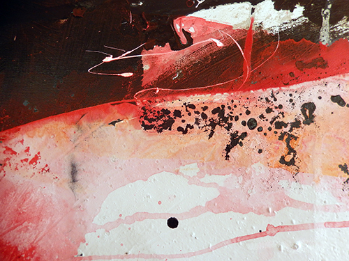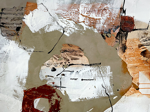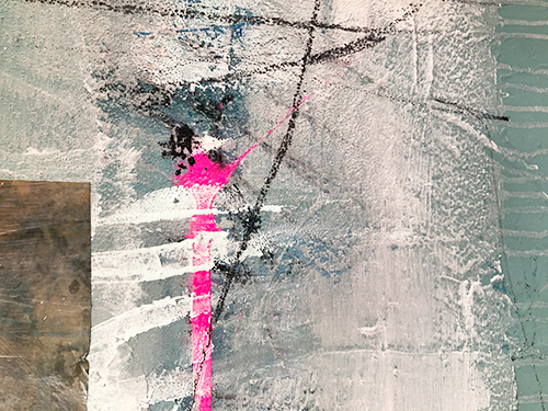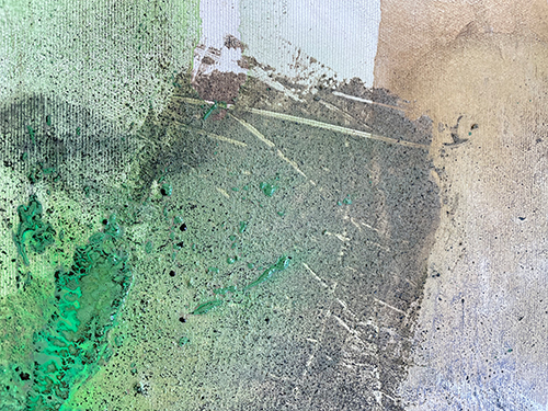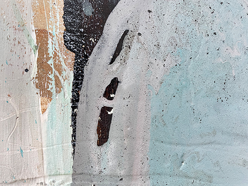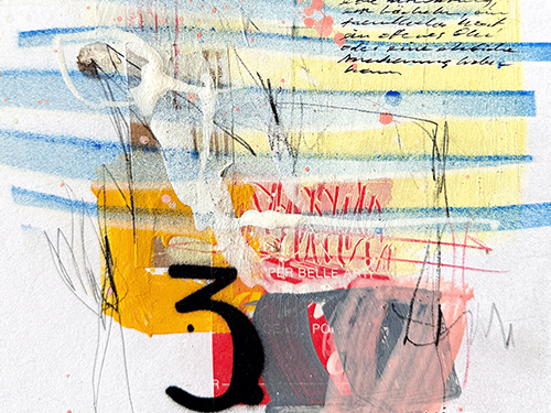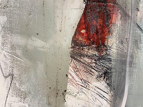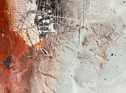 Rich areas of colour, poured, filled or painted, cover our substructure of collages and layers of material. Some colours speak loudly, others whisper softly, some spread out boldly, others withdraw elegantly. Colours are not simply a means to an end – they live, change, demand space. Sometimes they even seem to have their own little life of their own. And we can achieve a lot even with just a few colours and pigments.