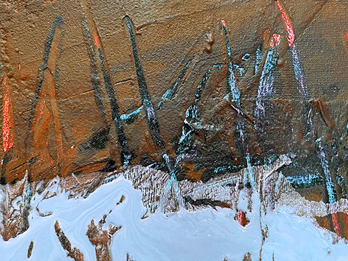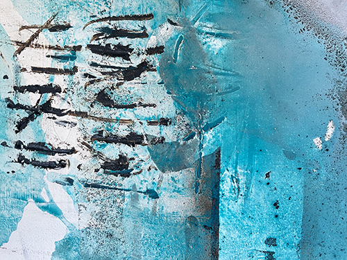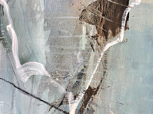 Together we will revitalise the cold winter landscape step by step with authentic works. We work with unusual materials on canvas, collage, overpaint and reduce. By condensing numerous contrasting layers and working patiently, a multi-dimensional picture with depth is created.