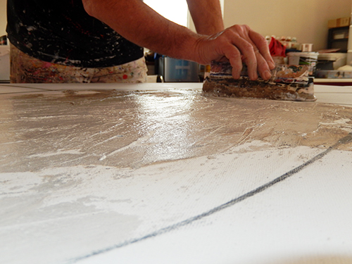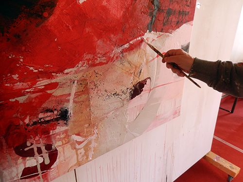 It is about the courageous development of powerful impressions in generous layering, new ways of expressing moods and the reflection of natural life processes in concrete material and spatial references. I love the ‘magic of the material’. Together we create surfaces with depth in several steps before we condense, reduce and bring the pictorial expression to an expressive finish in dialog with the world of color.